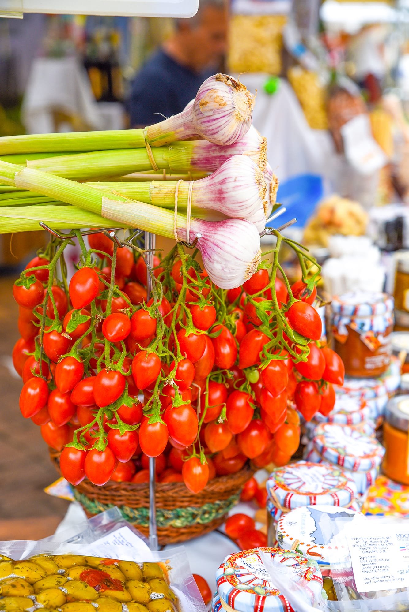 Prodotti tipici siciliani, ortaggi, verdure, creme dolci